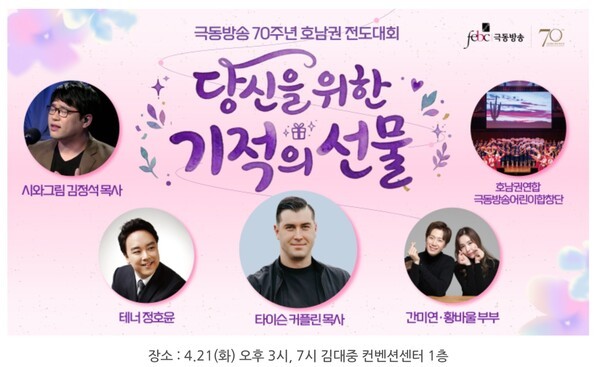 대한민국 복음 방송의 중심인 극동방송이 창사 70주년을 맞아 광주 지역 복음화와 영성 회복을 위한 특별한 찬양과 말씀의 축제를 개최한다.