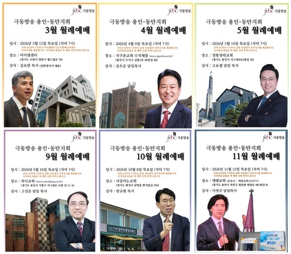 ▲ 2026년 극동방송 용인동탄지회 월례예배 일정 포스터