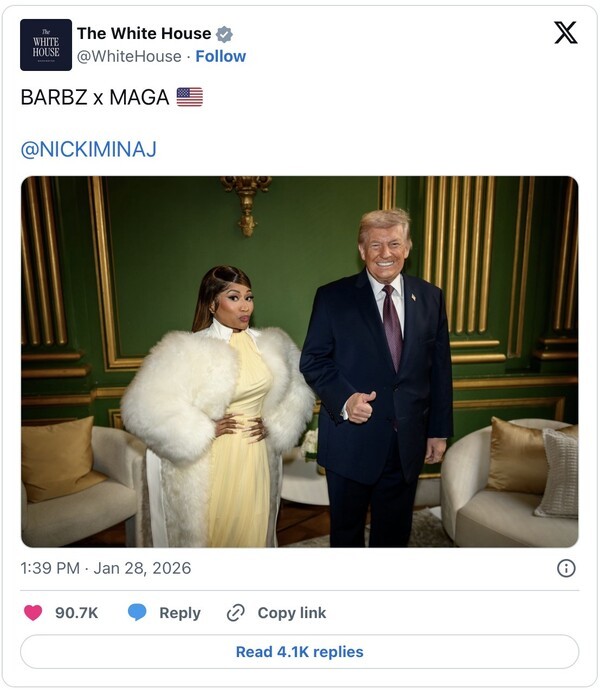 행사 직후 백악관은 소셜 미디어를 통해 미나즈와 트럼프가 함께 찍은 사진을 공개하며 미나즈의 팬덤명인 "바브즈(BARBZ)와 마가(MAGA)"라는 문구를 게시했다. 한편, 미나즈는 자신의 팬들을 위한 '트럼프 어카운트' 기금으로 15만 달러에서 30만 달러 사이의 금액을 기부할 계획이라고 밝혔다.