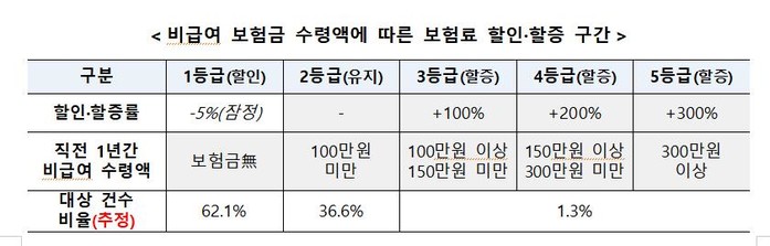이에 따라 보험료 갱신 전 1년간 비급여 보험금 수령액이 100만원 이상∼150만원 미만인 경우 100%, 150만원 이상∼300만원 미만인 경우 200%, 300만원 이상인 경우 300% 각각 할증된다.