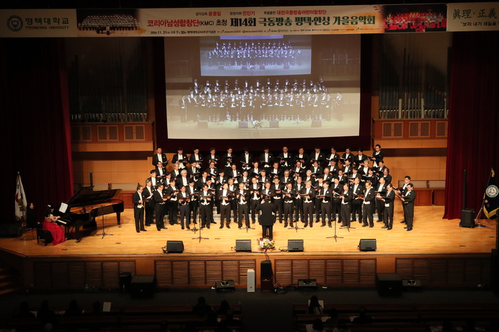 이날 서울극동방송 평택.안성운영위원회와 평택,안성디지털문화선교협의회가 주최하고 극동방송과 평택대학교가 주관하여 열린 가을음악회는 서울극동방송 조안나 아나운서가 사회자로 등단하여 평택.안성디지털기독교문화선교협의회 이사장 이명섭목사의 환영사. 평택대학교 이동현 총장의 축사 후 1부 순서에서 코리아 남성합창단 지휘자 민인기 합창지휘와 맹은지 피아노 반주로 찬송가 곡 중 내 주는 강한 성이요 (M.Lutter 작곡, 이현철 편곡) 외 3곡을 합창했으며