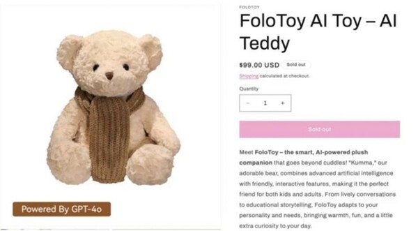 한편 ChatGPT 제작사 오픈AI는 PIRG 보고서에서 문제점이 제기된 AI 기반 곰 인형 ‘쿠마(Kumma)’를 만든 싱가포르 업체 폴로토이(FoloToy)의 계정을 최근 정지했다. 해당 장난감은 성냥 사용법과 성적 내용 등을 상세히 설명한 것으로 드러났다. 오픈AI 대변인 가비 레일라는 “미성년자를 착취·위험 노출·성적 대상화하는 사용은 정책상 금지돼 있으며, 모든 개발자에게 동일하게 적용된다”고 밝혔다.