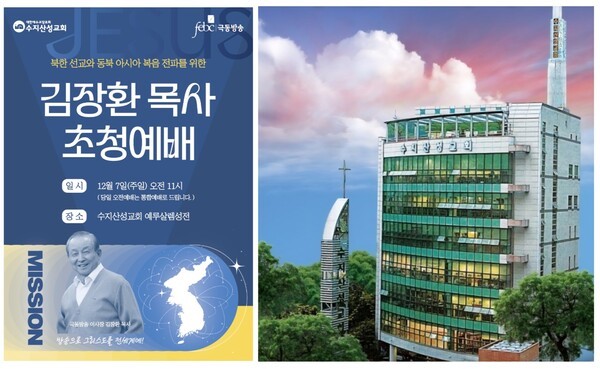 | ▲ 수지산성교회 전경과 초청예배 포스터 |