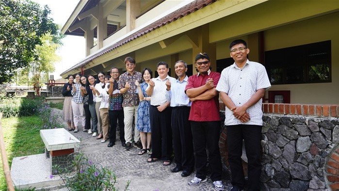 ▲2024년 9월 17일, 인도네시아 족자카르타의 사나타달마대학의 팹랩 설치 예정 건물 (신관우 단장과 함께 해당 대학 과학교육학부의 학장 및 학과장 등 참석) [출처:중앙일보] |