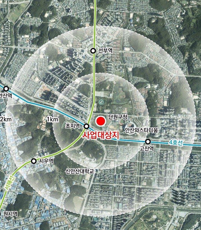 시와 공사의 기본구상을 살펴보면 초지역세권 개발사업은 명품 주거단지와 대형 쇼핑몰, 업무·숙박 복합시설, 문화·체육 시설, 학교 등을 조성해 안산을 대표하는 대규모 랜드마크를 건설하는 것을 목표로 한다.