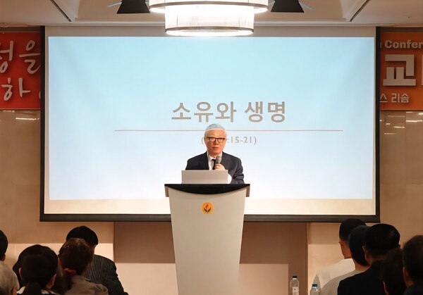 | ▲ 말씀을 전하는 전 합신대 김학유 총장 |