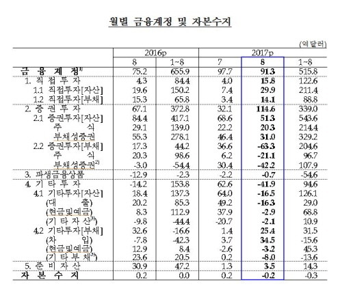 한국은행은 29일, '2017년 8월 국제수지(잠정)'를 발표했다.