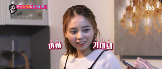 홍수아는 요리중 정신없는 상태에서도 강리즈의 질문에 친절하게 답변하며 이야기를 이어간다. 영상속에서 강리즈는 식탐인재 답게 식재료와 요리에 대하여 호기심을 나타내며, 재미를 더했다.