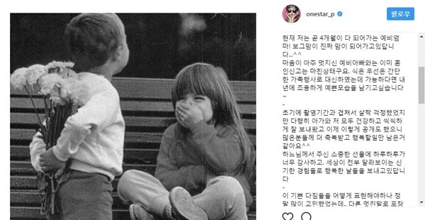 ▲박한별은 "예비 아빠와는 혼인 신고를 마친 상태"라면서 "결혼식은 간단하게 가족행사로 대신했다"고 말했다. (사진출처=박한별 인스타그램)공개된 글에서 박한별은 "혼인 신고를 마친 상태"라면서 "결혼식은 간단하게 가족행사로 대신했다"고 말했다.