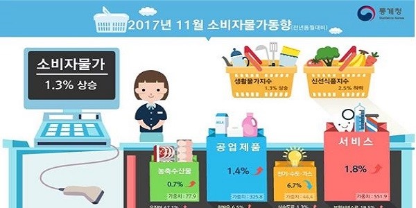 ▲11월 소비자물가의 상승률이 1.3%를 기록했다. (사진출처=통계청)
